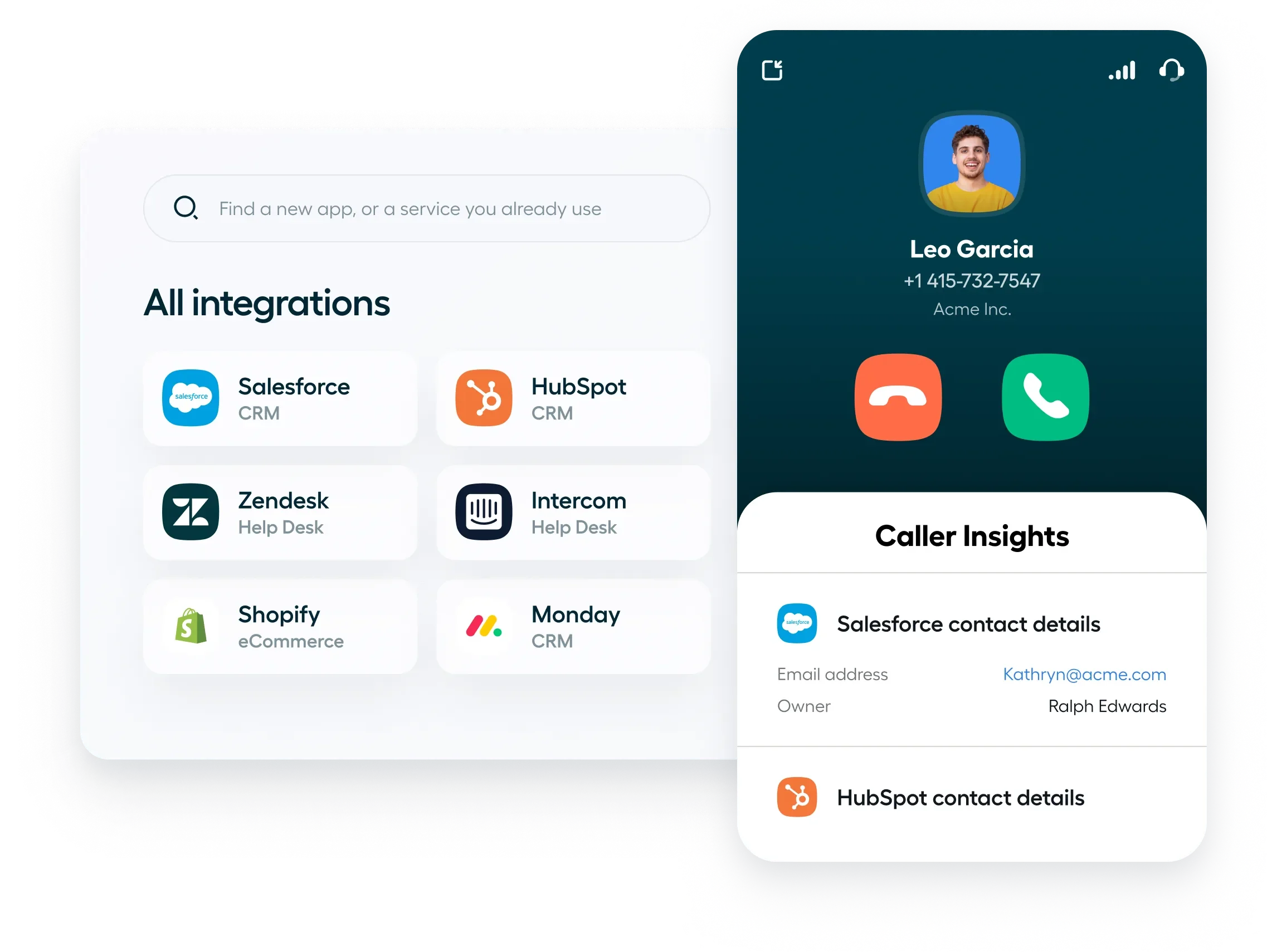 Aircall connects with your CRM and support tools to display key information before and during each call.